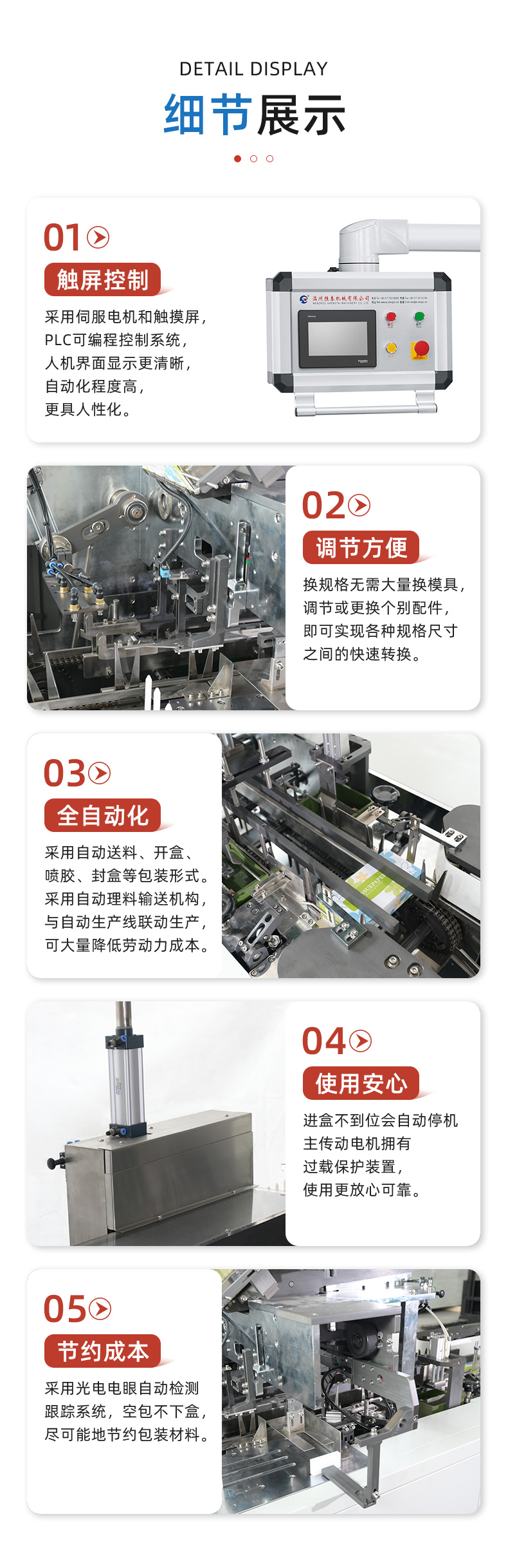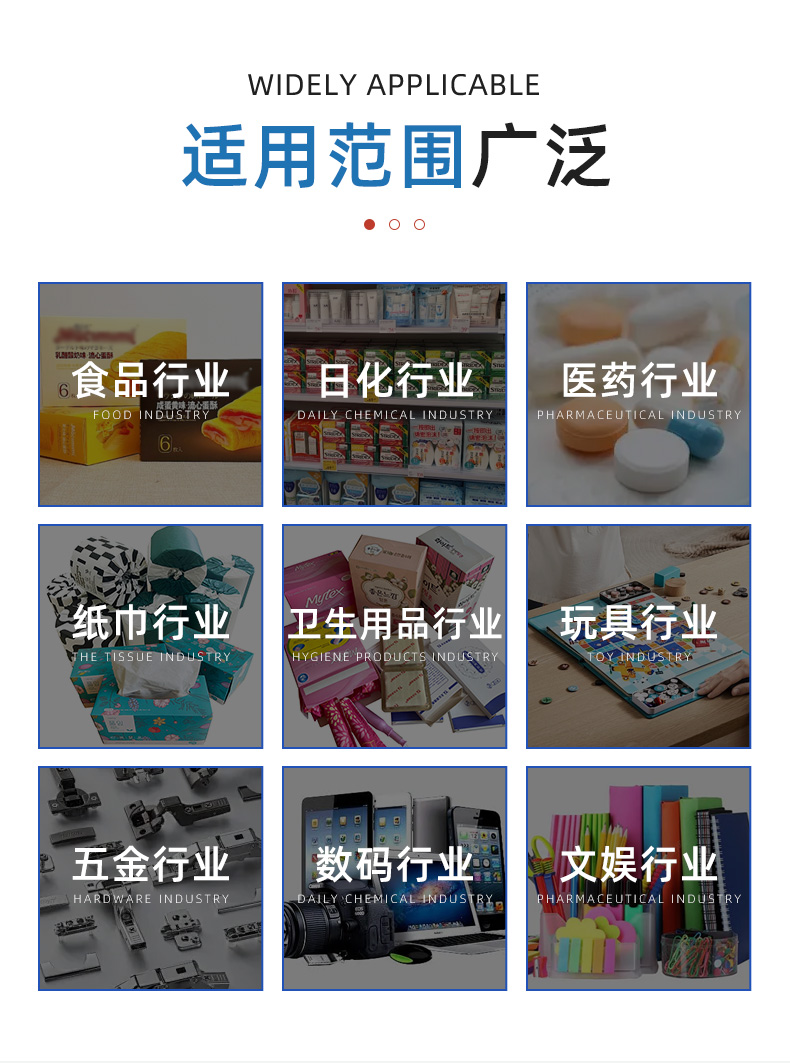 產(chǎn)品概述:本設(shè)備用于加寬面巾紙、方巾紙、手帕紙、棉柔巾等自動入盒封盒包裝,采用伺服傳動及PLC控制系統(tǒng).存儲紙盒平臺,自動取盒至輸送機構(gòu)并開盒成型然后送至撐盒機構(gòu);然后模具將產(chǎn)品推入紙盒,紙盒行進(jìn)過程中自動噴膠機封盒并送出包裝機.